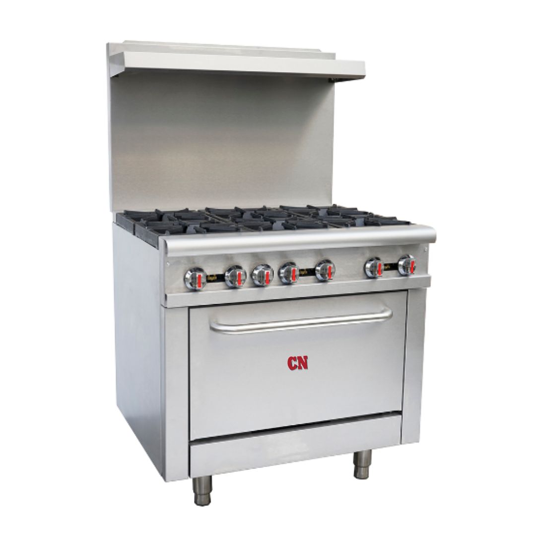 CN 6 OPEN BURNERS WITH OVEN & OVERHEAD SHELF ~ CN-6OBO