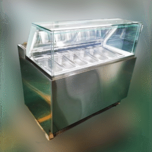 – Refrigeration system defrosts using an electromagnetic valve and automatic timed short-time defrosting with hot air, ensuring ice cream doesn’t melt during defrosting.
