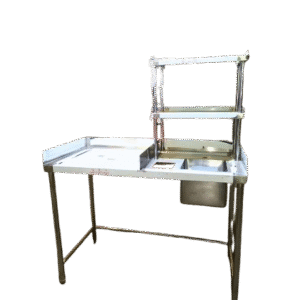 (NEW) TWO BOWL SINK WITH BACK SPLASH & SLATTED SHELF (FLATPAD) - Dim : W1800x D700x H870mm